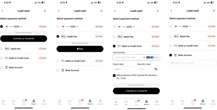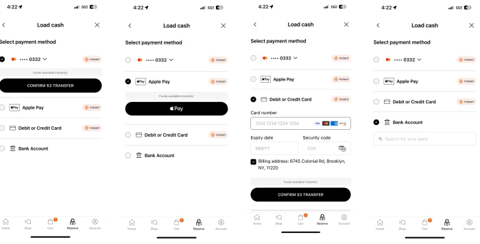 - Select payment method. By default, any added debit or credit card is selected first, but users can switch between options. Once selected, click on ‘confirm’.