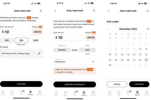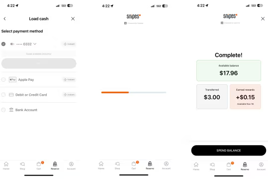 - That’s it! The money will move into your SNIPES Reserve wallet automatically on the date and schedule you choose.